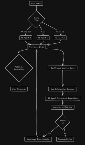 Multi-Interface Accessibility: Employees, contractors, and consultants can access knowledge through chatbots, email responses, and phone calls, ensuring information is always at their fingertips
